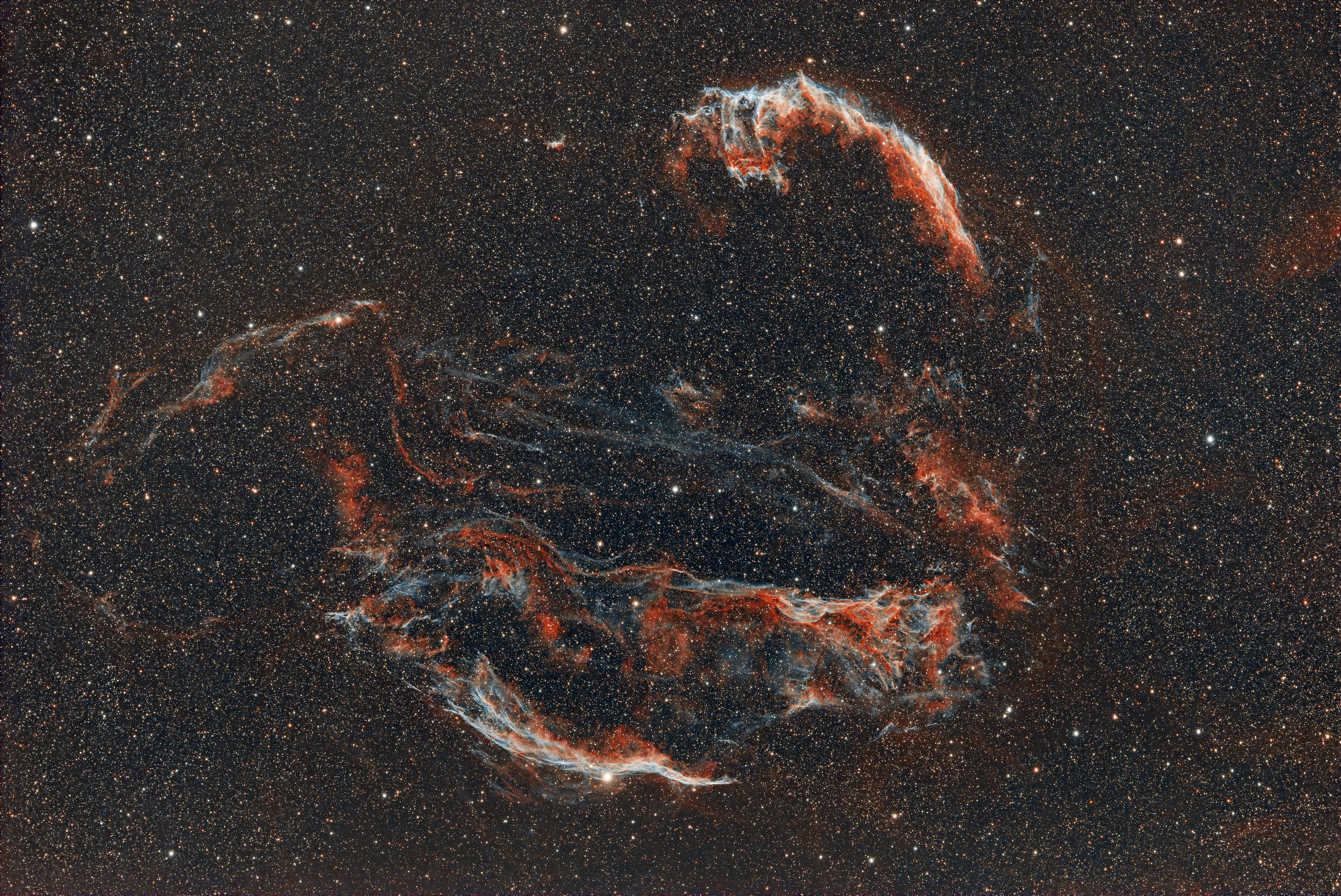 La nébuleuse du Voile est un nuage de gaz et de poussières chauffés et ionisés dans la constellation du Cygne.