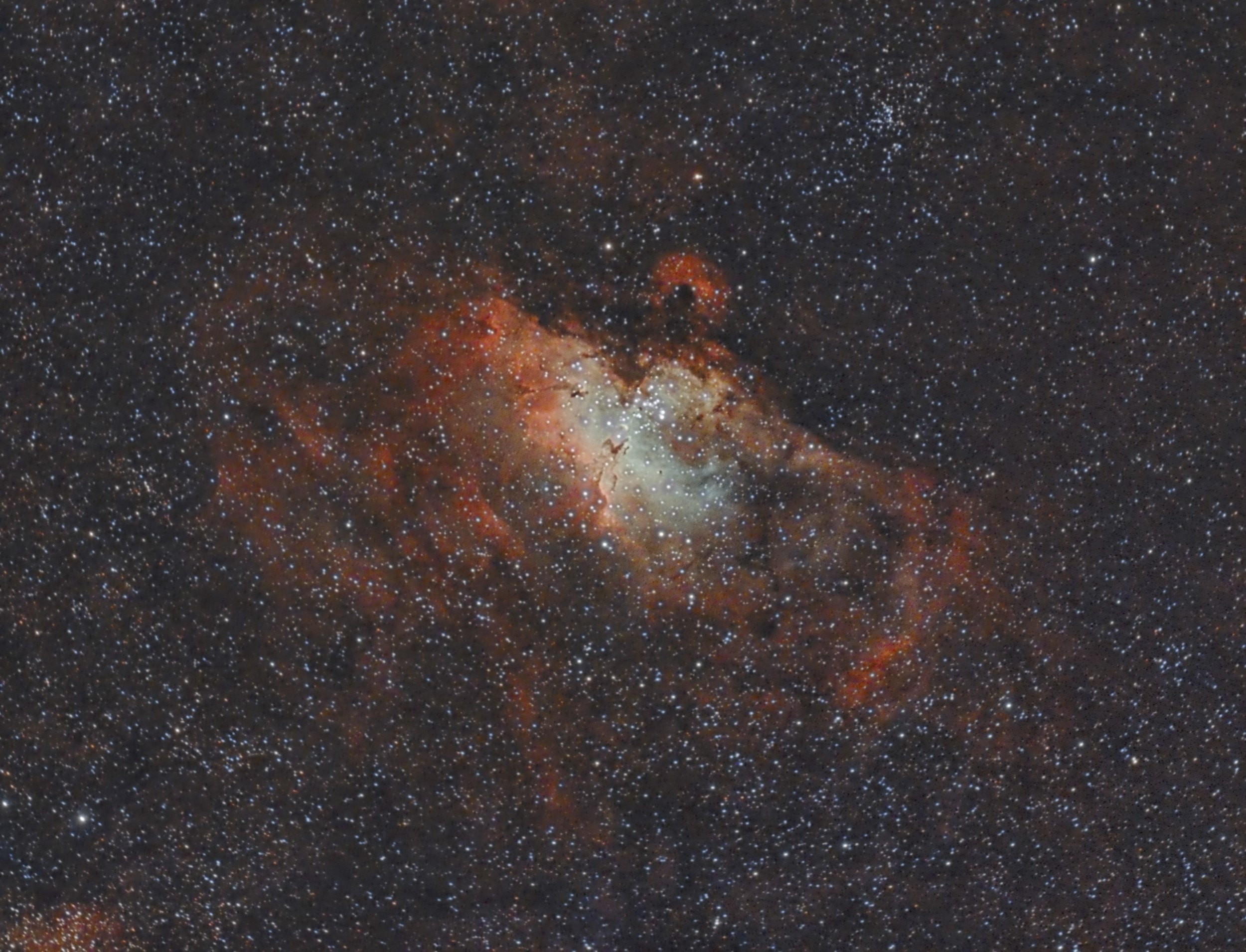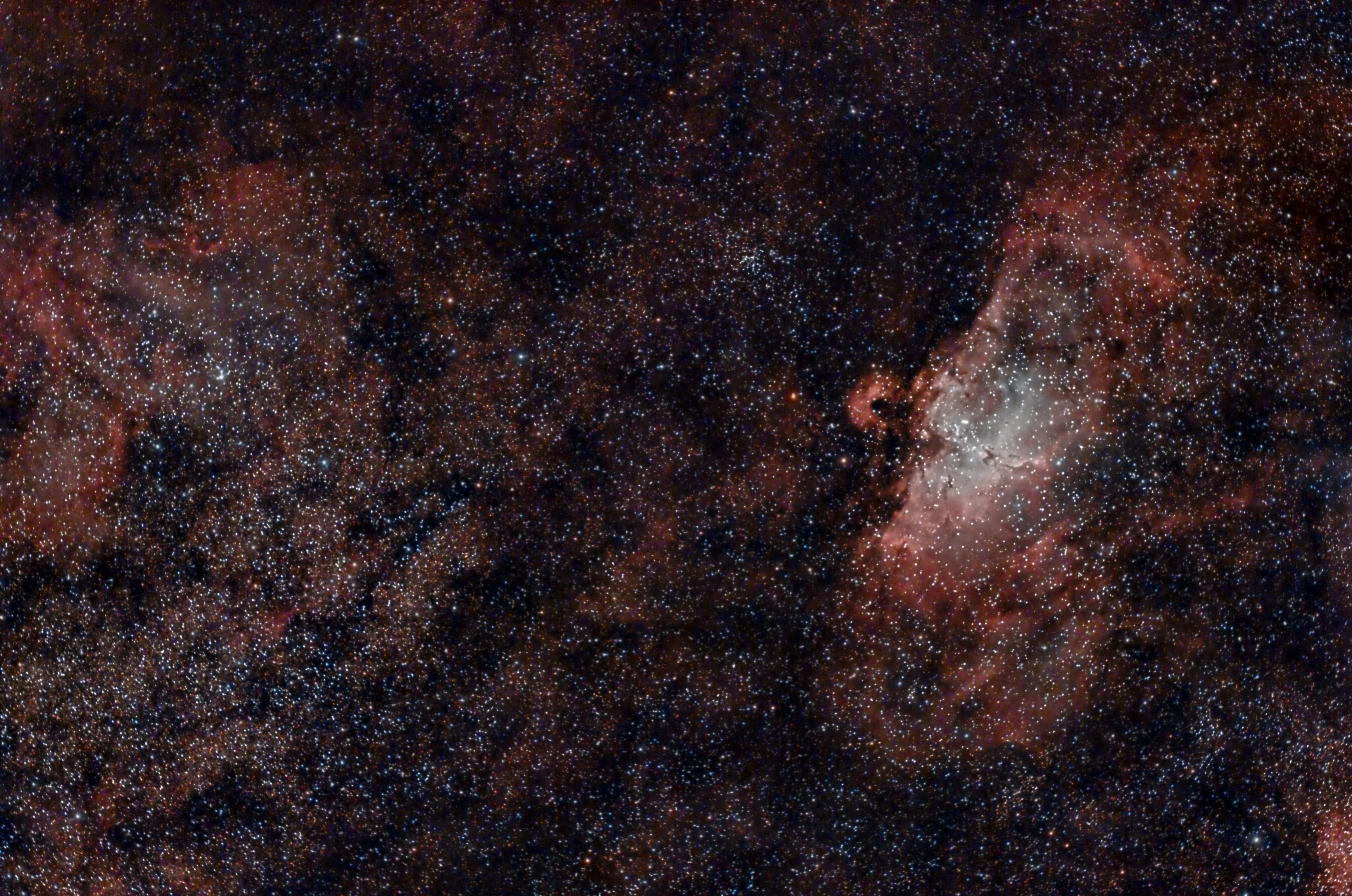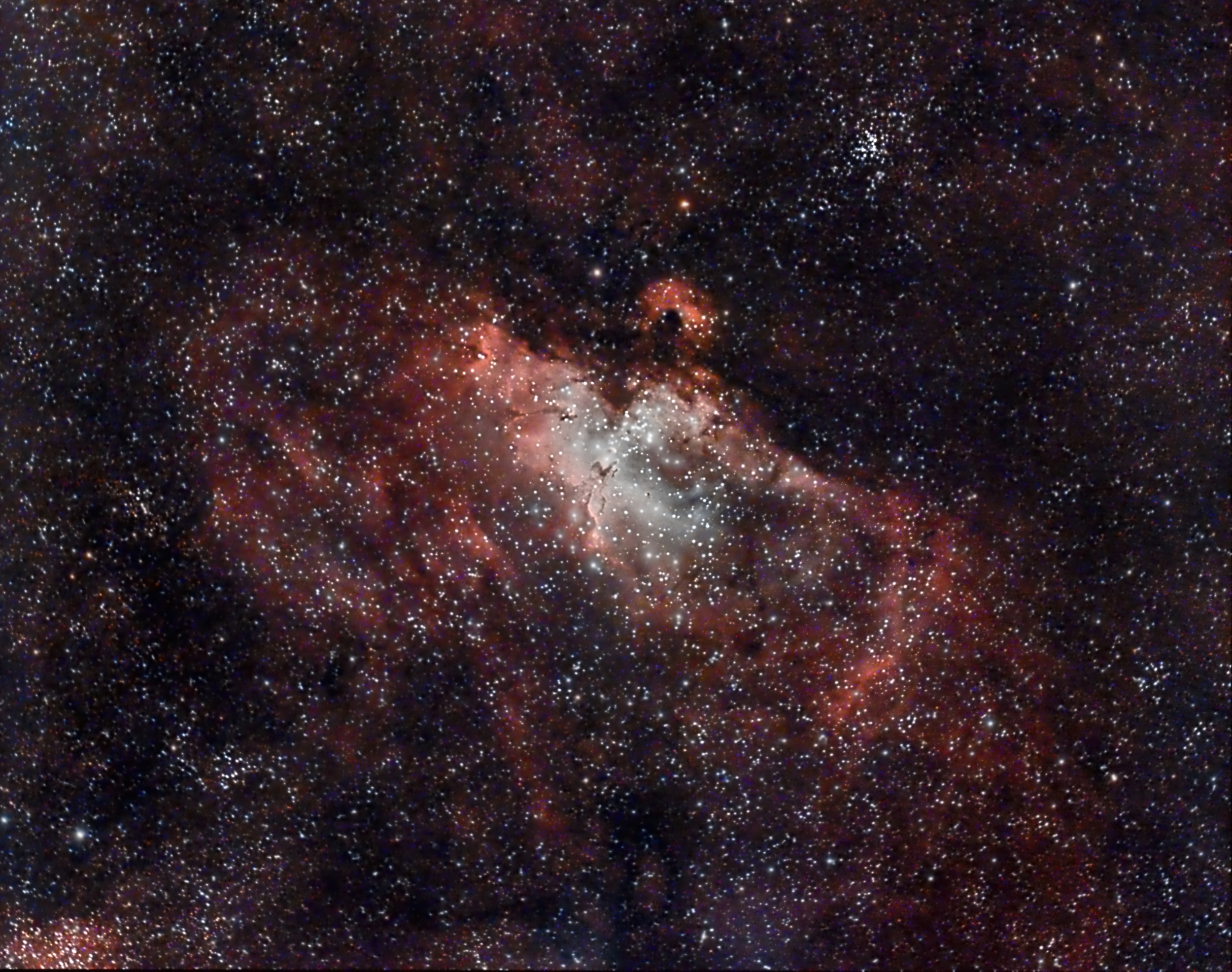 il s'agit de Messier 16 appelée la nébuleuse de l'aigle dans le Serpent...