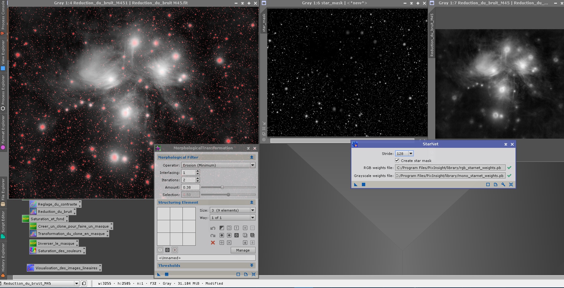 - Déconvolution des étoiles (capture d'écran vue des process),