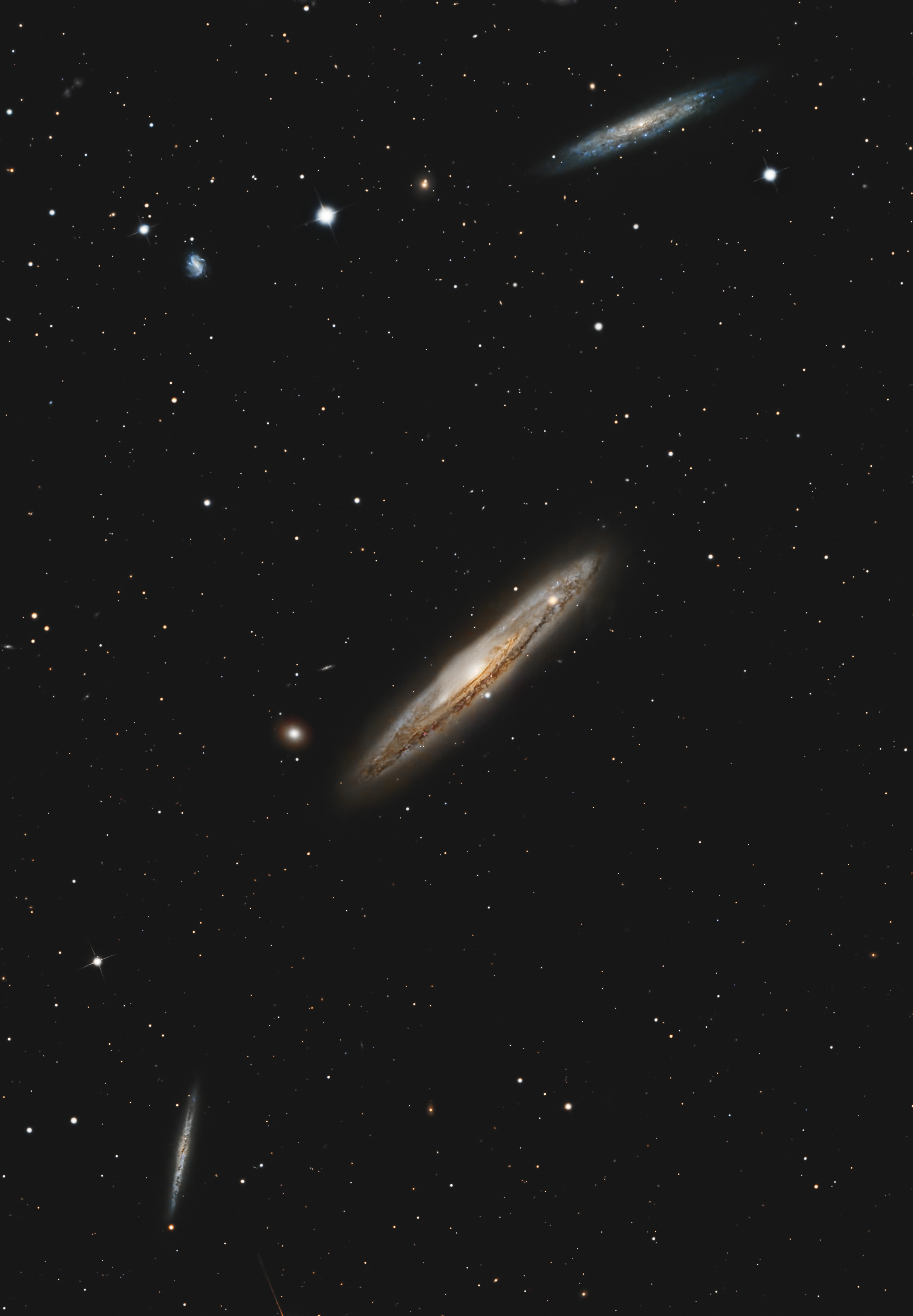 Groupe de galaxies autour de NGC 4216 dans la constellation de la Vierge (NGC4222, NGC4206, IC771…). On distingue bien la supernova SN2024GY à l’extrémité droite de NGC4216. Elle est apparue le 4 janvier 2025 et a été photographiée pour la première fois par Koichi Itagaki, un amateur japonais.