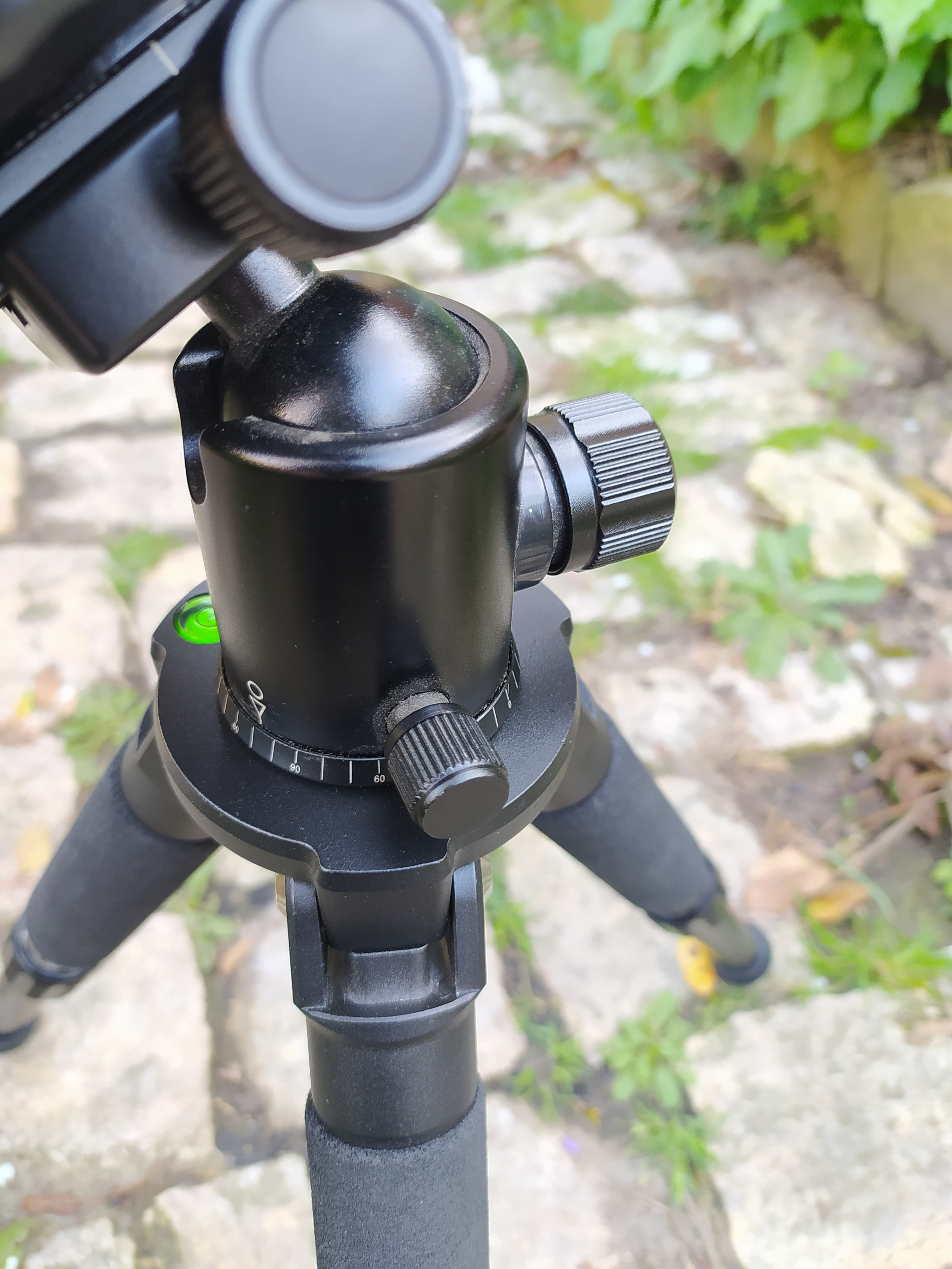 - il faut un dispositif mécanique réglable 2 axes pour modifier l'axe azimutal (vertical en mode normal) pour le diriger vers le Pôle. Dans mon cas j'ai utilisé une rotule photo que je possédais déjà, placée entre le trépied du Seestar et le Seestar lui-même (photo ci-jointe)