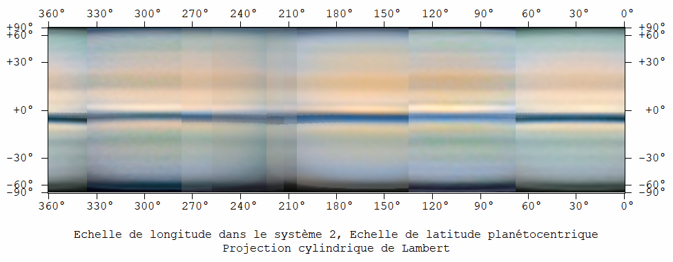 Il s'agit d'une rotation complète de la planète Saturne processée à partir de toutes les images réalisées cette saison 2024/2025 en ajoutant des satellites via le  logiciel Winjupos.