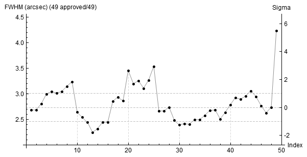 EVOLUTION FWHM AU COURS DE LA NUIT: