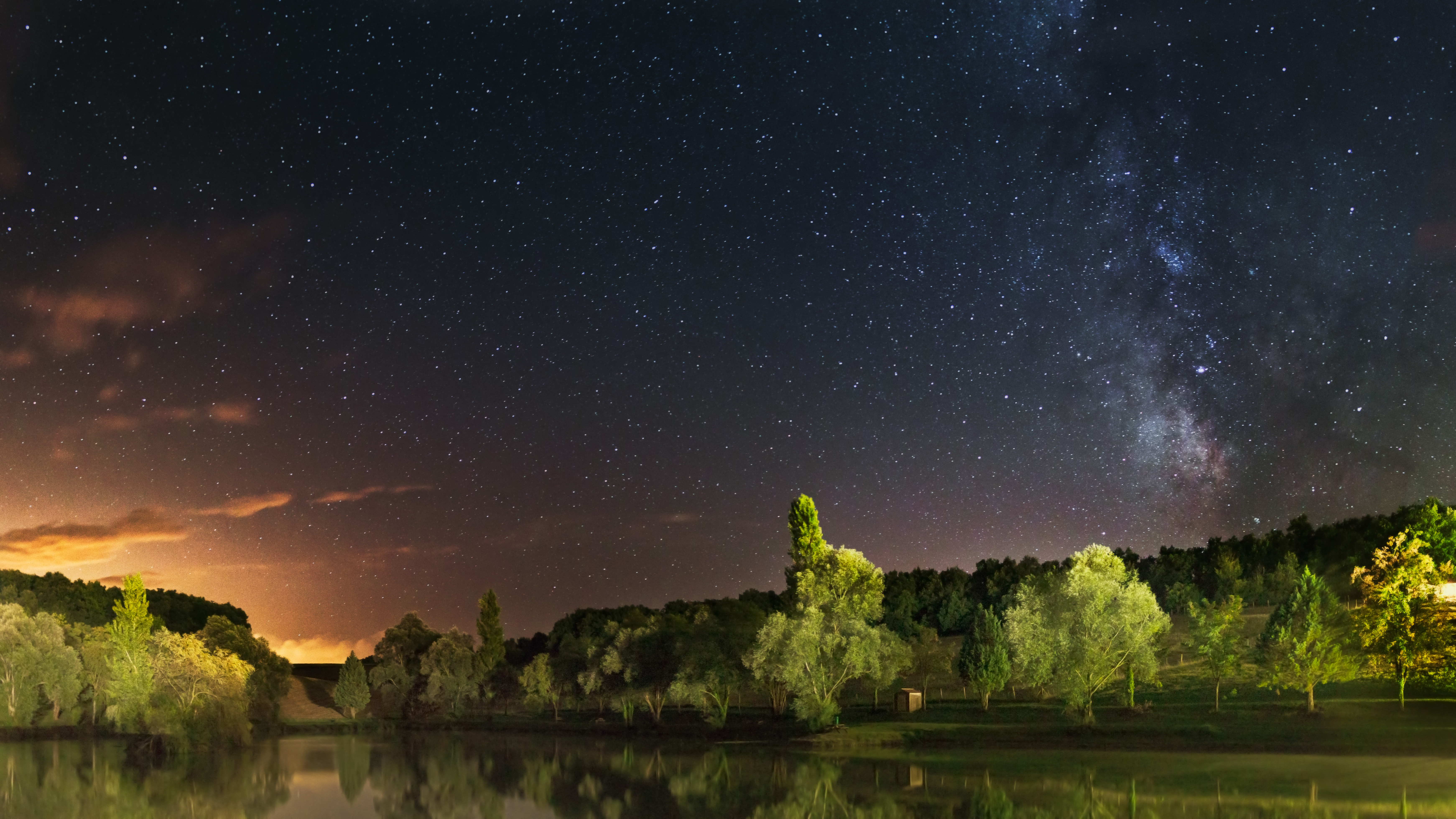 Un panoramique 16:9 de 7 images sur un étang à Lectour.