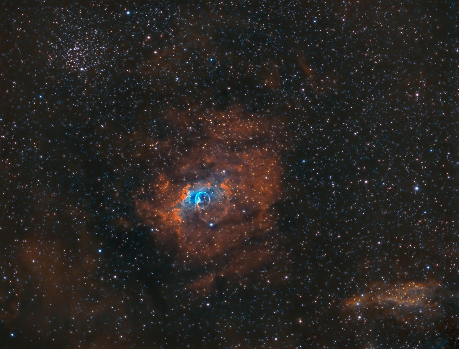Voici la nébuleuse de la bulle et messier 52 en HOO & SHO faites à Chilly Mazarin en octobre 2017
