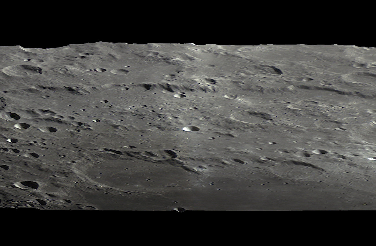 Image 3D, mosaïque de 2 images, Fracastorius et Rupes Altaï :