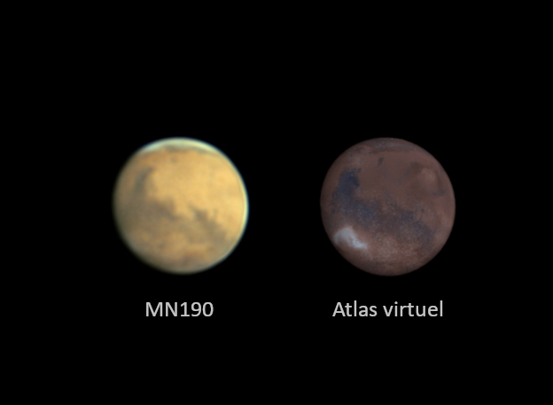 La partie de gauche de l'image est la photo que j'ai obtenue, et la partie droite l'image donnée par l'Atlas Virtuel pour référence.