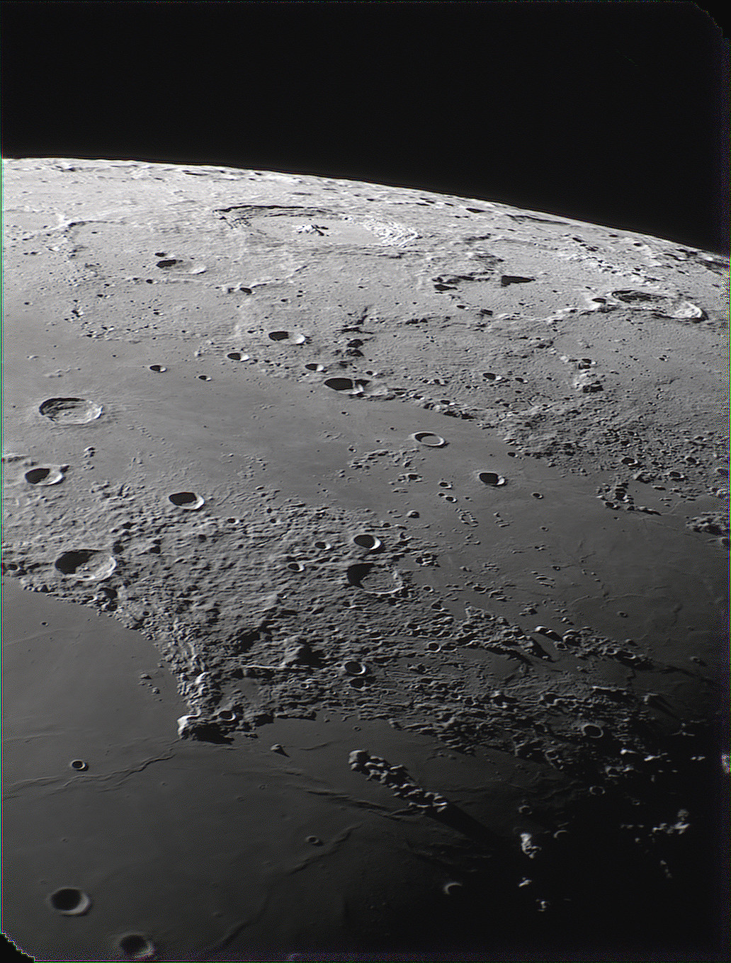 Quelques images de la Lune faites au Newton 200/1000 + camera ASI 224 (pose 4.5 ms env. , 5000 images par film, 30% conservées env.)+ filtre IR/UV cut+ barlow x3 (sauf mosaïque). Films réalisées à 7h du mat avec un léger brouillard et une très faible turbulence.