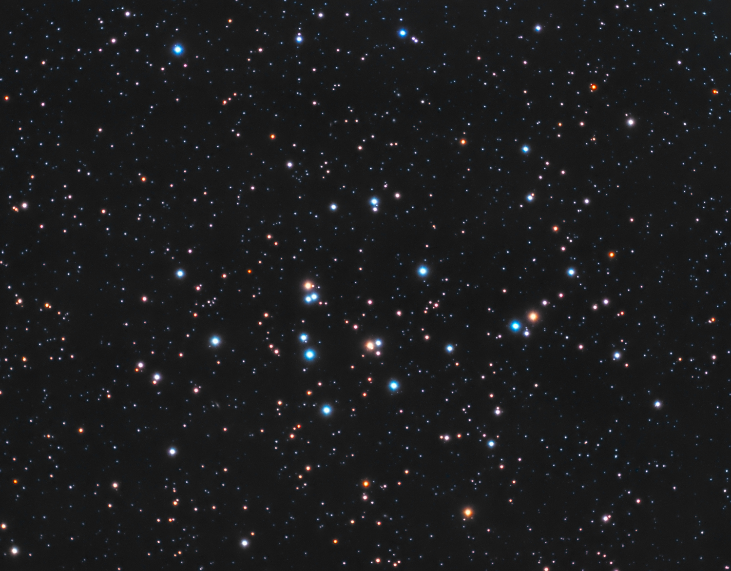Ceci était un essai pour connaitre le nombre de poses nécessaire sur ce type d'objet.J'ai volontairement un peu saturé les étoiles de l'amas pour qu'elles ressortent mieux des autres étoiles ...