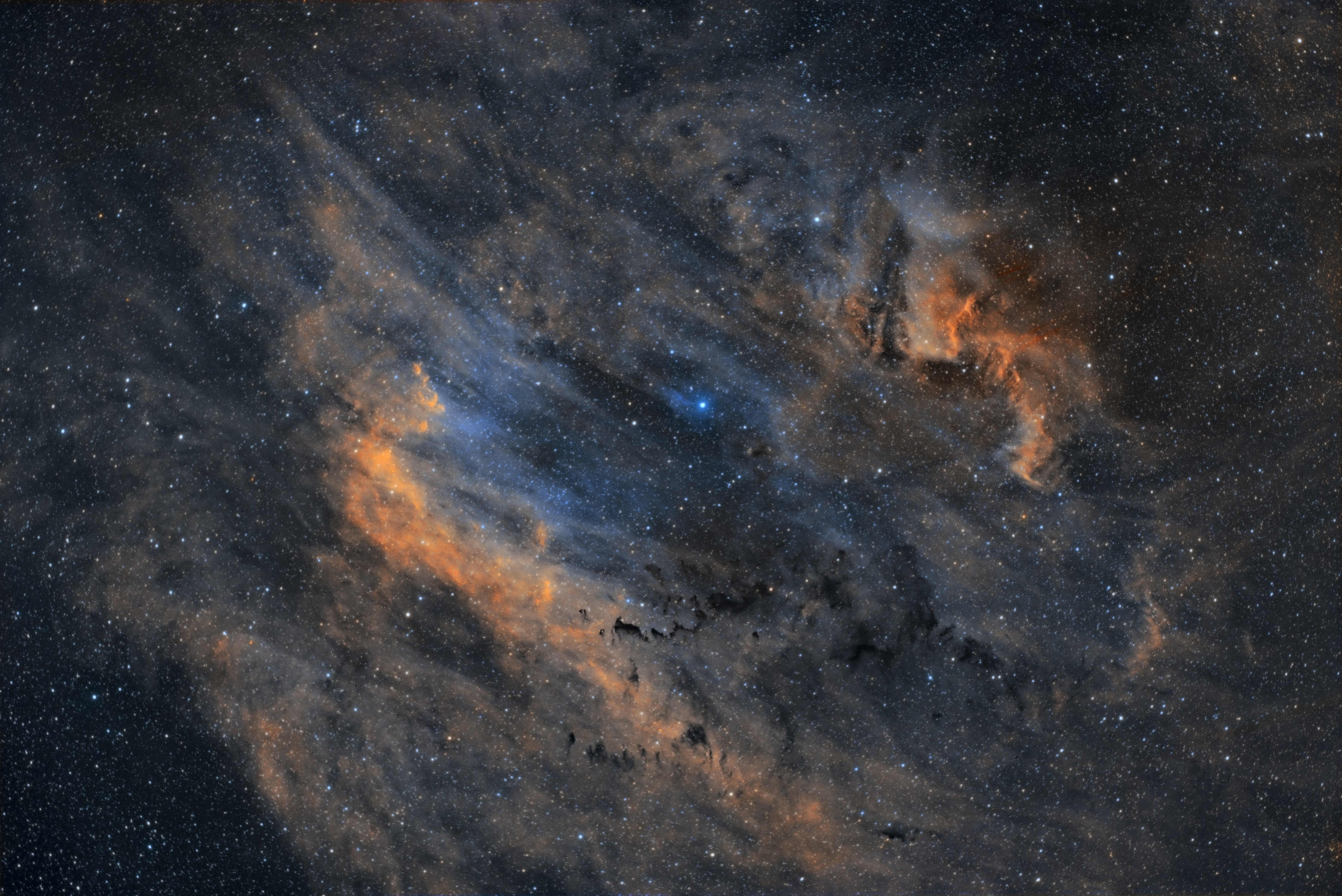 Filtres : Baader H-alpha 6.5nm (CMOS-Optimized) 36 mm, Baader OIII 6.5nm (CMOS-Optimized) 36 mm et Baader SII 6.5nm (CMOS-Optimized) 36 mm