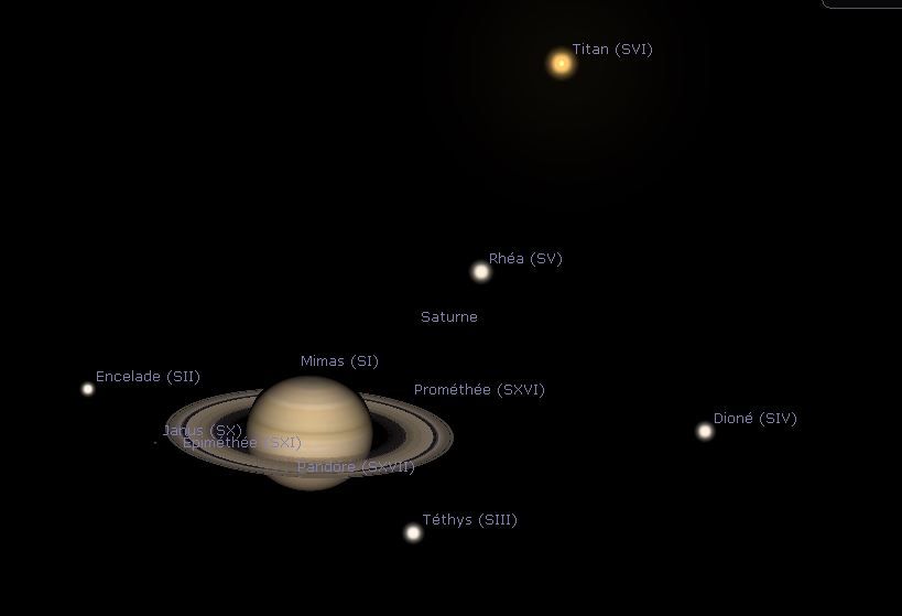 En 2nd image la position à la même date des satellites à partir d'une capture de Stellarium. Xavier M.