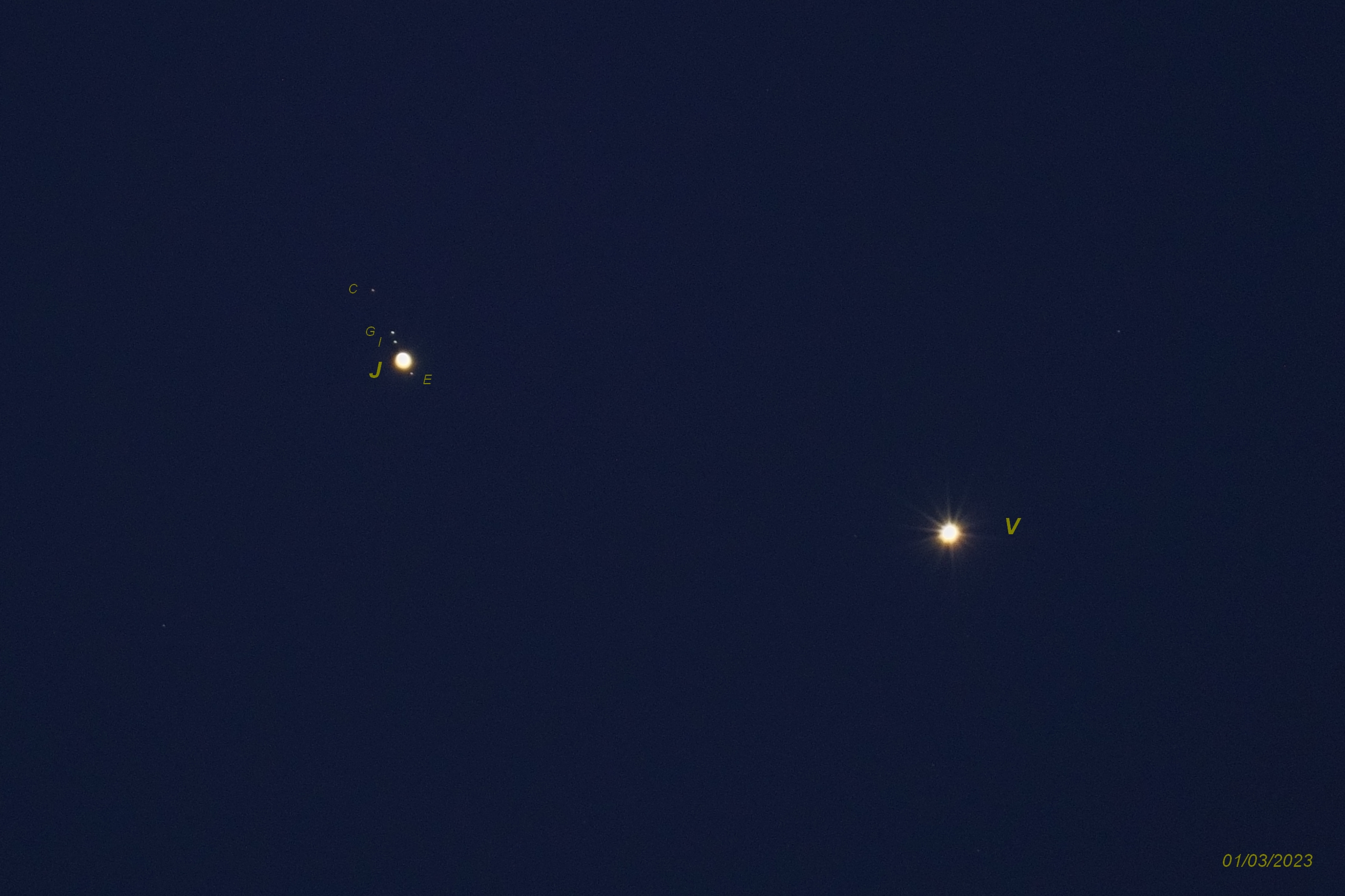 Conjonction Vénus-Jupiter 01 et 02 mars 2023
