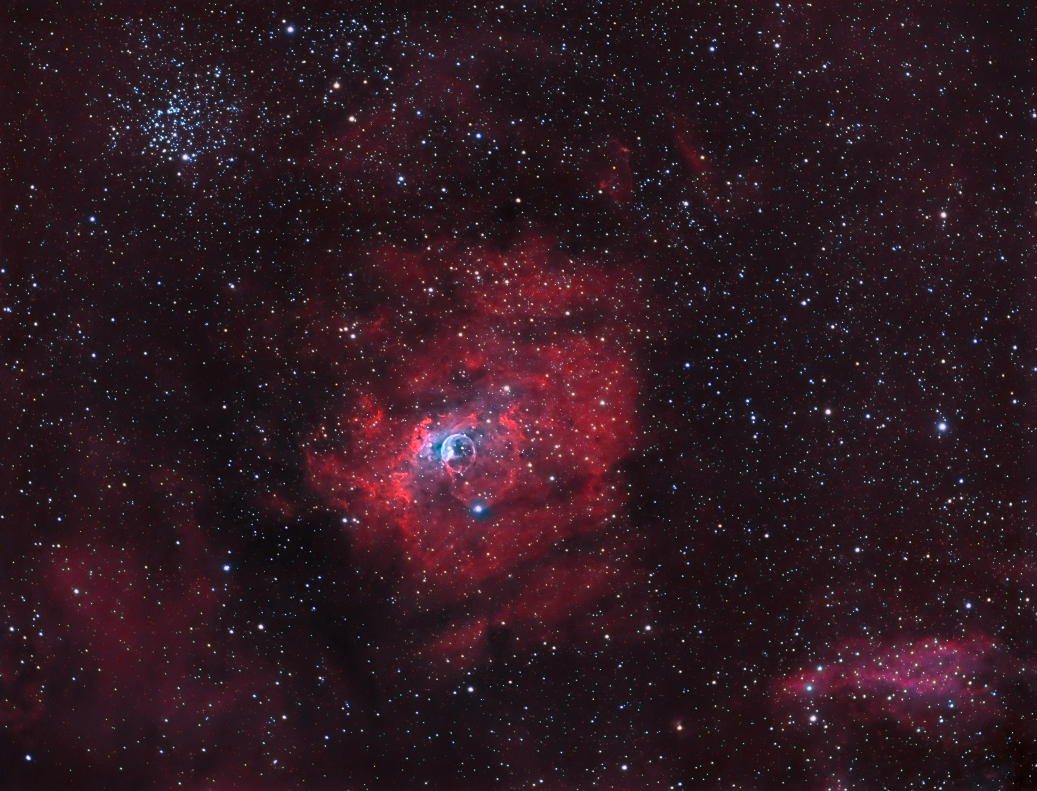Voici la nébuleuse de la bulle et messier 52 en HOO & SHO faites à Chilly Mazarin en octobre 2017