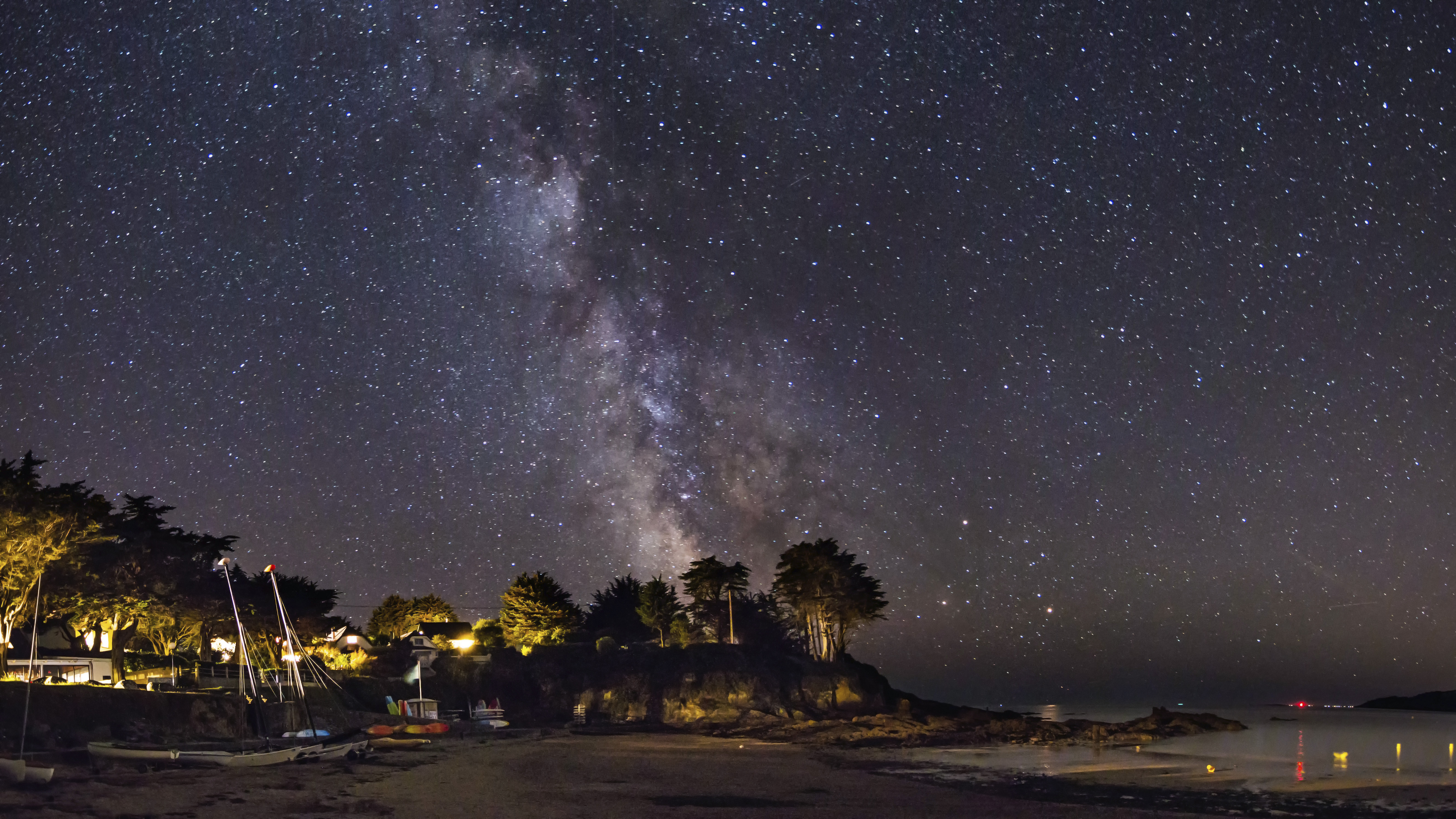 Voie lactée lors d'une soirée sans lune lors de la dernière nuit des étoiles, sur Plage de Kerfany les pins, Moelan sur mer