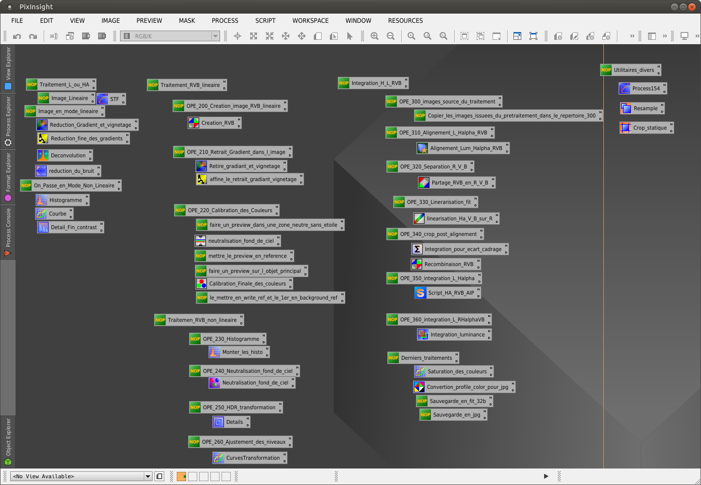 Débutant en traitement Pixinsight, j'ai tenté de traiter M31. Voila donc ma version de M31 traitée avec Pixinsight. Le process utilisé est défini par l'image issue de Pixinsight jointe.