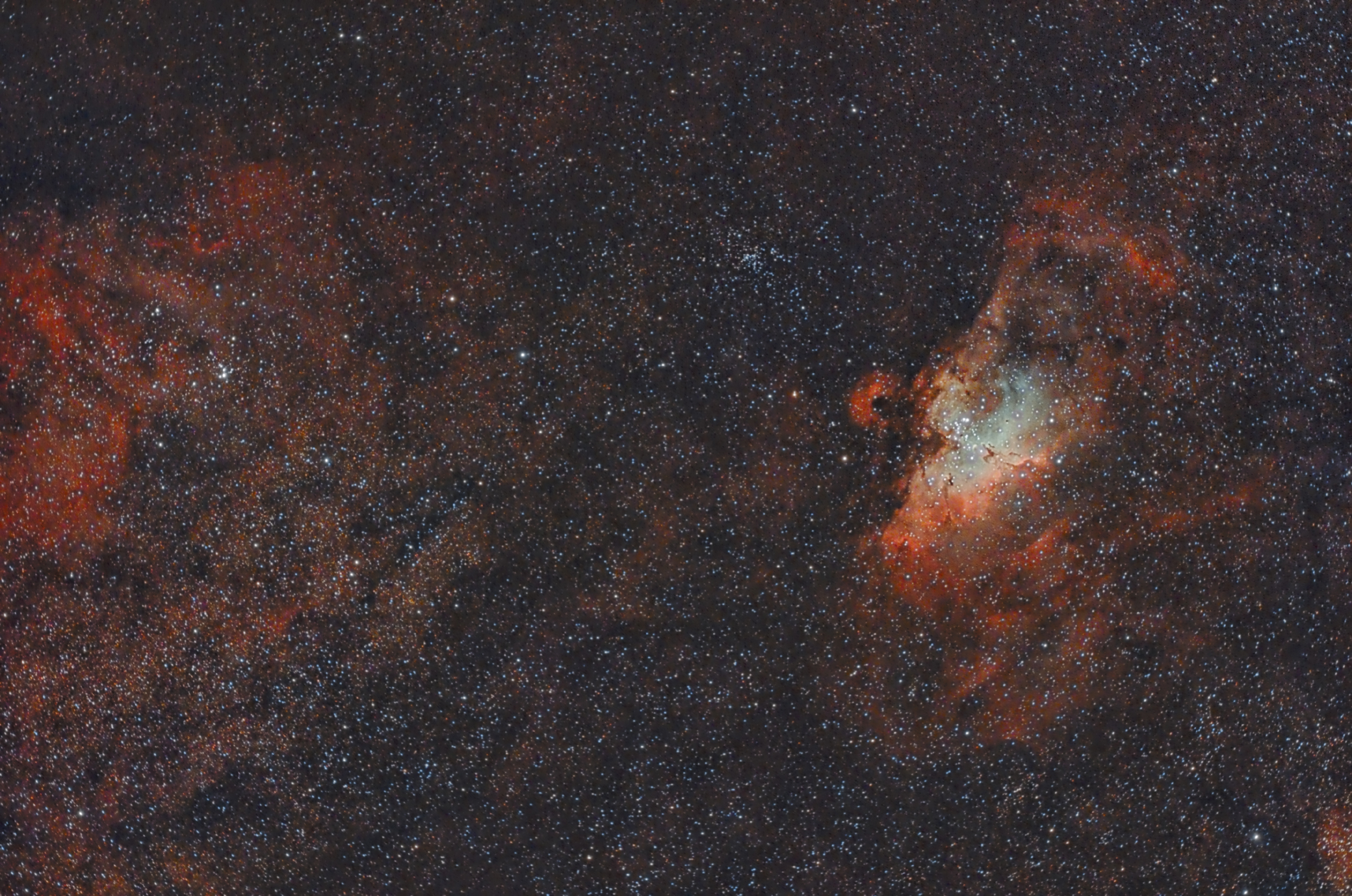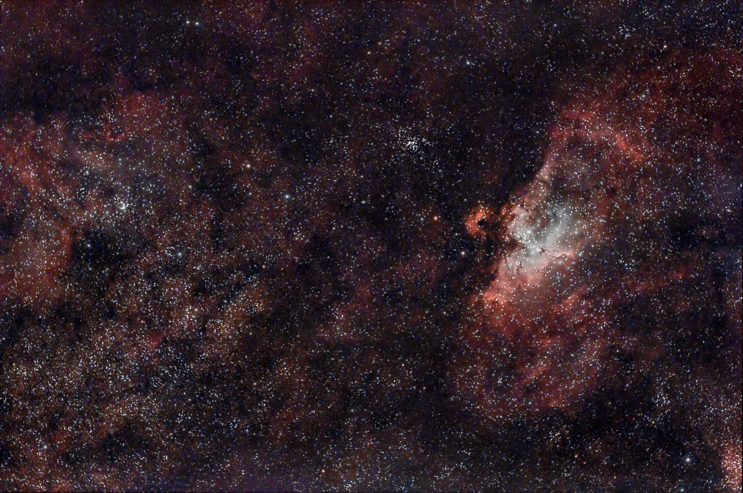 il s'agit de Messier 16 appelée la nébuleuse de l'aigle dans le Serpent...