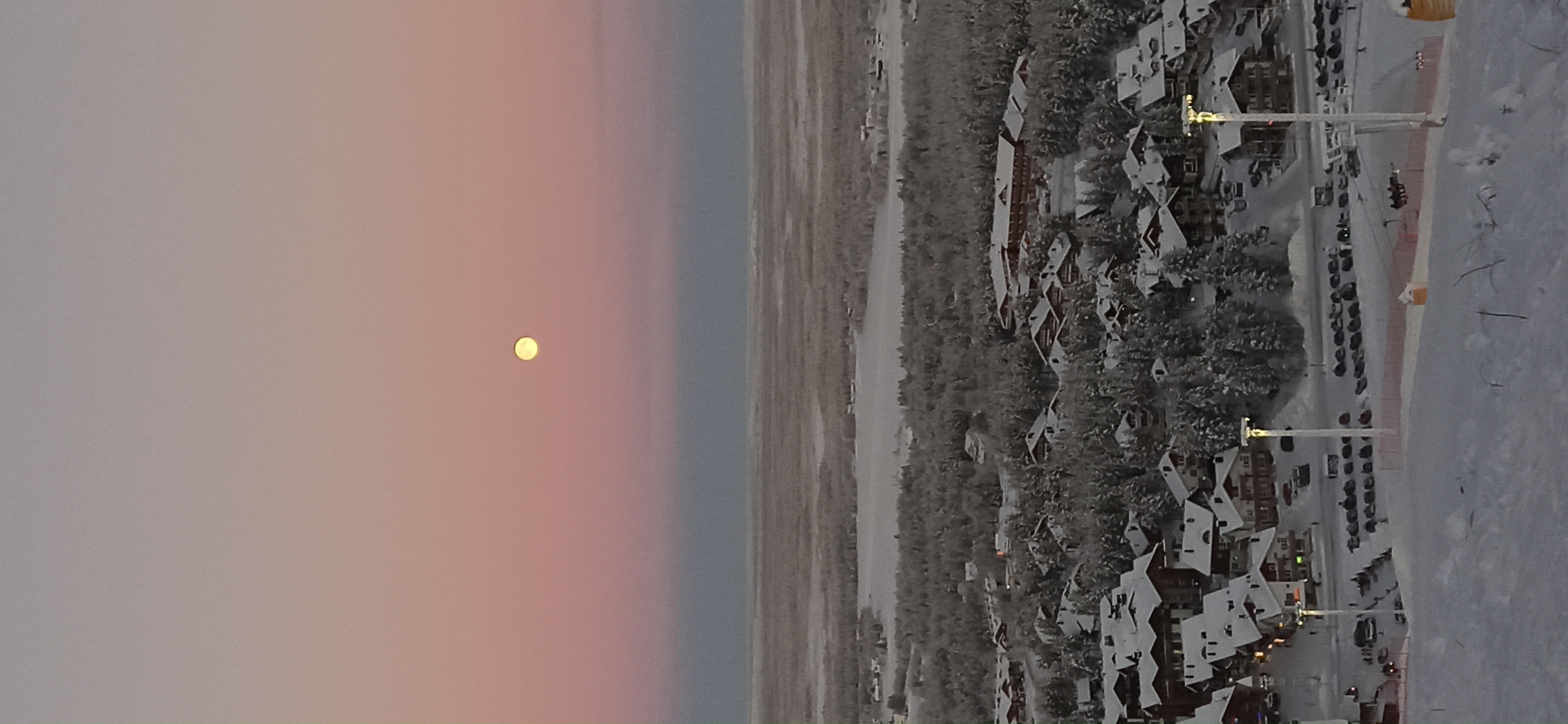Voici une photo de la lune qui se couche sur la ville de Lévi en Laponie. Elle a été prise le vendredi 6 janvier 2023 à 10h12 par -21 degrés...une journée d'à peine 6h, de 9h30 à 15h30, des nuits en conséquence très longues, le rêve pour les amateurs astros comme nous.